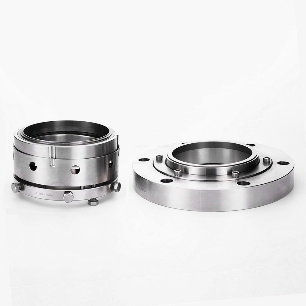 機(jī)械密封(mechanical seal)是指由至少一對(duì)垂直于旋轉(zhuǎn)軸線端面在流體壓力和補(bǔ)償機(jī)構(gòu)彈力(或磁力)的作用下以及輔助密封的配合下保持貼合且相對(duì)滑動(dòng)所構(gòu)成的防止流體泄漏的裝置。主要部件包括動(dòng)環(huán)、靜環(huán)、密封圈、冷卻裝置和壓緊彈簧。